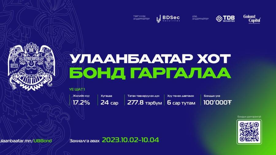Улаанбаатар хот тулгамдсан асуудлуудаа өргөн хүрээнд даацтайгаар шийдэх, нийгмийн дэд бүтцийн хүртээмжийг нэмэгдүүлэх зорилгоор Монгол Улсын анхны орон нутгийн бондыг гаргаж буй.
