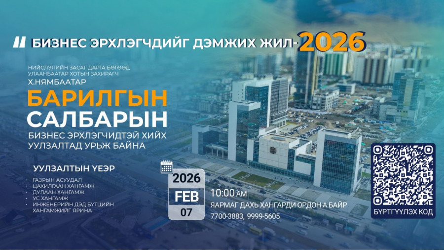 Нийслэл 2026 оныг бизнес эрхлэгчдийг дэмжих жил болгон зарласан. Энэ хүрээнд 02 дугаар сарын 07-ны өдөр нийслэлийн Засаг дарга бөгөөд Улаанбаатар хотын Захирагч Х.Нямбаатар барилгын салбарын бизнес эр…