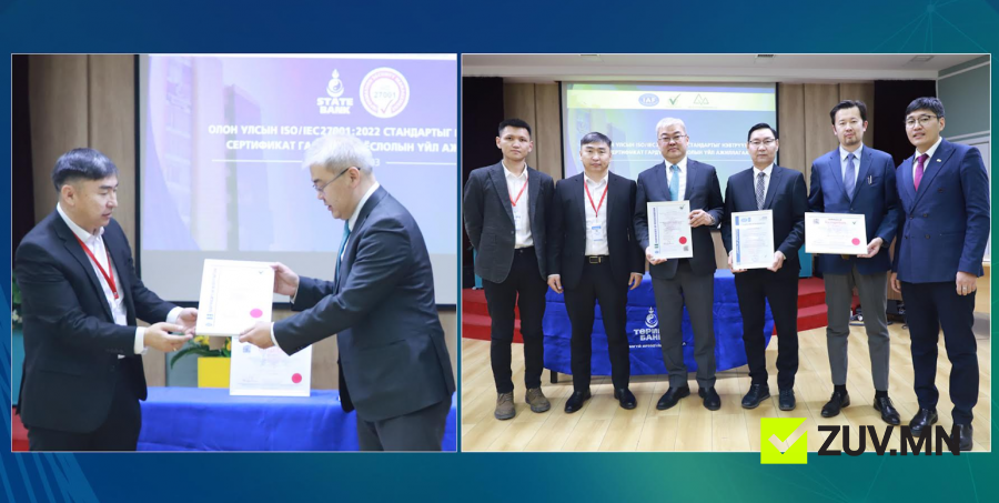 Ногоон хөгжлийг дэмжигч Төрийн банк мэдээллийн аюулгүй байдлын удирдлагын тогтолцооны олон улсын ISO/IEC27001:2022 стандартыг нэвтрүүлж, сертификатаа гардан авлаа.