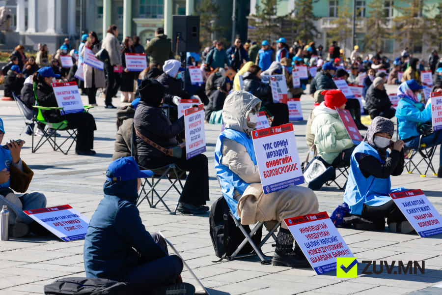 Багш нар цалингийн доод хэмжээг нэмэгдүүлэхийг шаардаж төв талбайд тав дахь өдрөө суулт зарлаж байна.