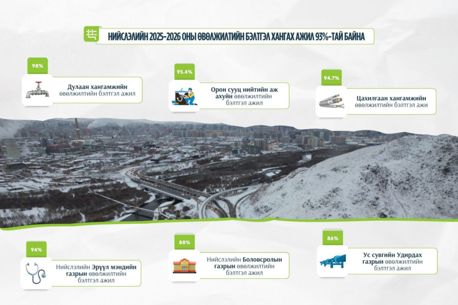 Нийслэлийн 2025-2026 оны өвөлжилтийн бэлтгэл ажлыг хангах зорилгоор энэ оны нэгдүгээр сараас эхлэн нэгдсэн төлөвлөгөө гарган, шат дараалсан арга хэмжээнүүдийг авч хэрэгжүүлж байна.