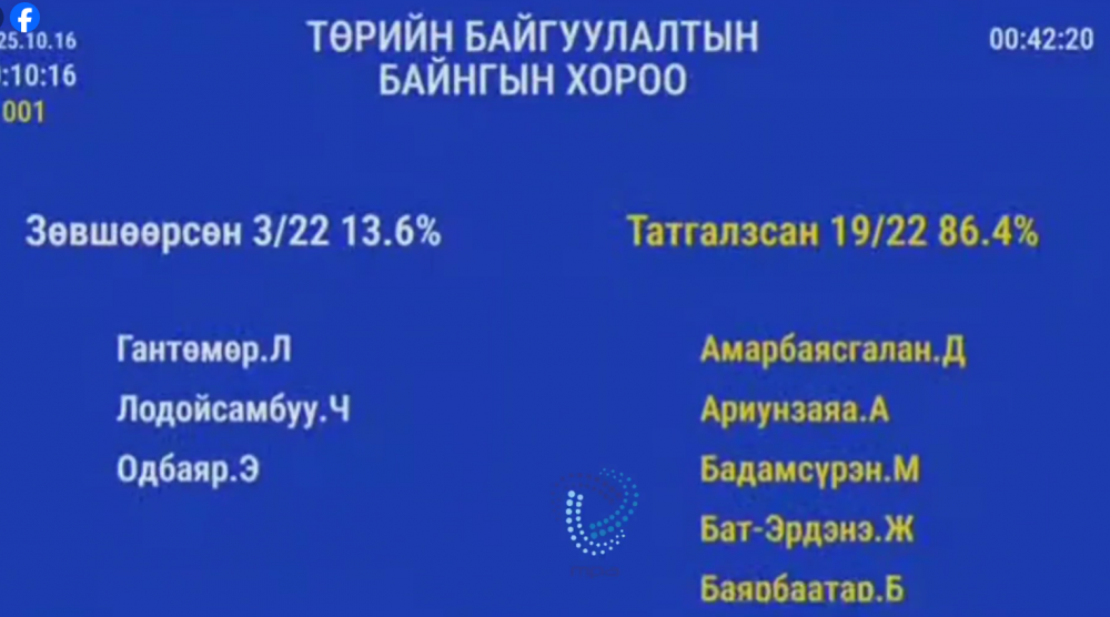 Төрийн байгуулалтын хороонд дээр Ерөнхий сайдыг огцруулах саналыг хэлэлцэхэд Д.Амарбаясгалан, Л.Оюун-Эрдэнэ нарын 19 гишүүн татгалзсан билээ.