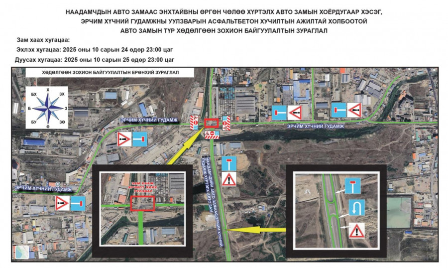Эрчим хүчний гудамжны уулзварыг 10 сарын 24-ний 23:00 цагаас нэг хоног хааж, асфальтбетон хучилтын ажил хийнэ