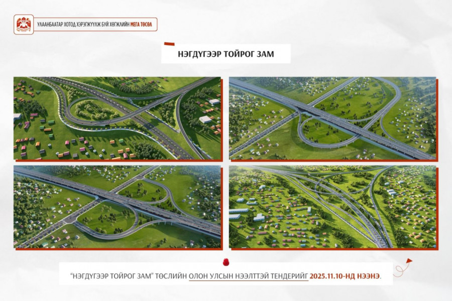 2025-2028 он хүртэл хэрэгжүүлэх мега төслүүдийн нэг болох “Нэгдүгээр тойрог зам” төслийн гүйцэтгэгчийг сонгон шалгаруулах олон улсын нээлттэй тендэрийг зарлаад буй. Тодруулбал, тус тендерийг түлхүүр гардуулах нөхцөлтэй, санхүүжилттэй хамтарсан буюу EPC+F (Engineering, Procurement, Construction and Financing) хэлбэрээр зарласан юм.