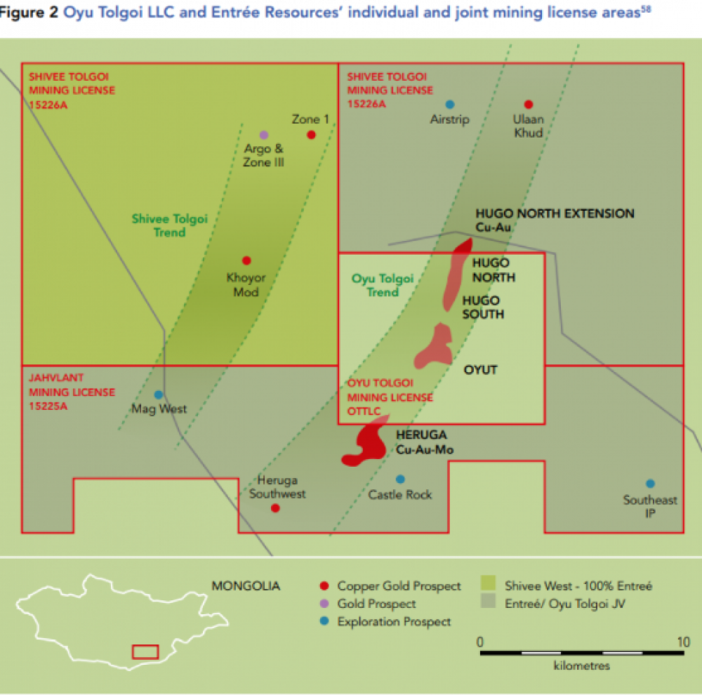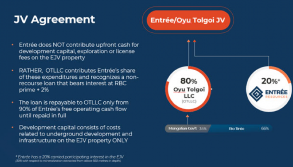 “Онтрэ гоулд”, “Рио Тинто” компаниуд 2004 онд байгуулсан гэрээгээрээ хүдэр “560 метрээс илүү” гүнд байвал “80:20”, “560 метр хүртэлх” хүнд байвал 70:30 хувиар хуваахаар тохирсон байдаг.