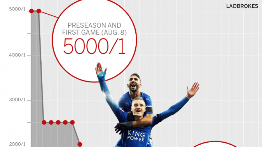 1884 онд байгуулагдсан “Лейстер сити” баг 2015-2016 оны улиралд Премьер лигт түрүүлсэн билээ. Үүнтэй зэрэгцээд тэдэнтэй холбоотой бас нэгэн рекорд тэмдэглэгдсэн нь улирлын эхэнд 5000 хүний нэг нь л “Үнэгнүүд”-ийг түрүүлнэ гэж бооцоо тавьж байсан ч тэр хүмүүс мөрийгөө авсан явдал юм. Өөрөөр хэлбэл 10 жилийн өмнө Лейстерт итгэж бооцоо тавьсан хүмүүс мөнгөө 5000 дахин өсгөж авч байжээ. 1000 паунд тавьсан хүн таван сая паунд авсан гэсэн үг. Үүнийг бусад боломжуудтай харьцуулсан сонирхолтой, гэхдээ нэр хүндтэй байгууллагууд явуулсан тоцооо судалгаатай магадлалуудыг сонирхож үзье.