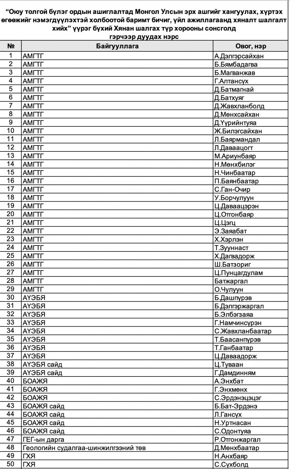 Эдгээр дуудагдсан гэрчүүд нь Оюутолгой тойрсон олон жилийн эргэлзээтэй асуудлуудад өөрийн биеэр ирж тайлбар хийх, олон нийтийг мэдэх эрхээр хангахад дэмжлэг болох гэрчүүд юм. Иймд эх орныхоо төлөө энэхүү боломжийг ашиглаж нээлттэй сонсголд идэвхитэй оролцож, үнэн зөв мэдээлэл өгөхийг хүсч байна.