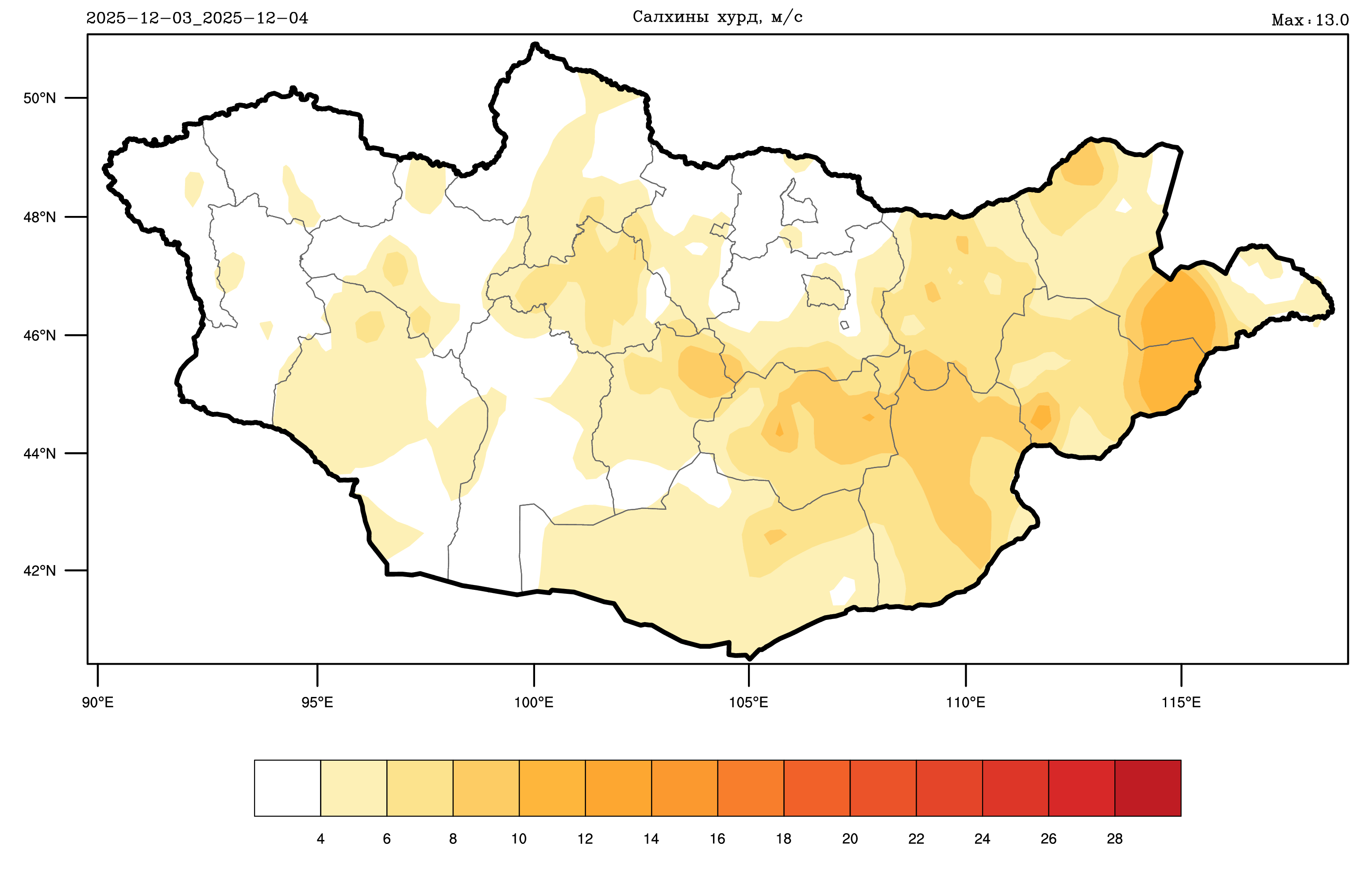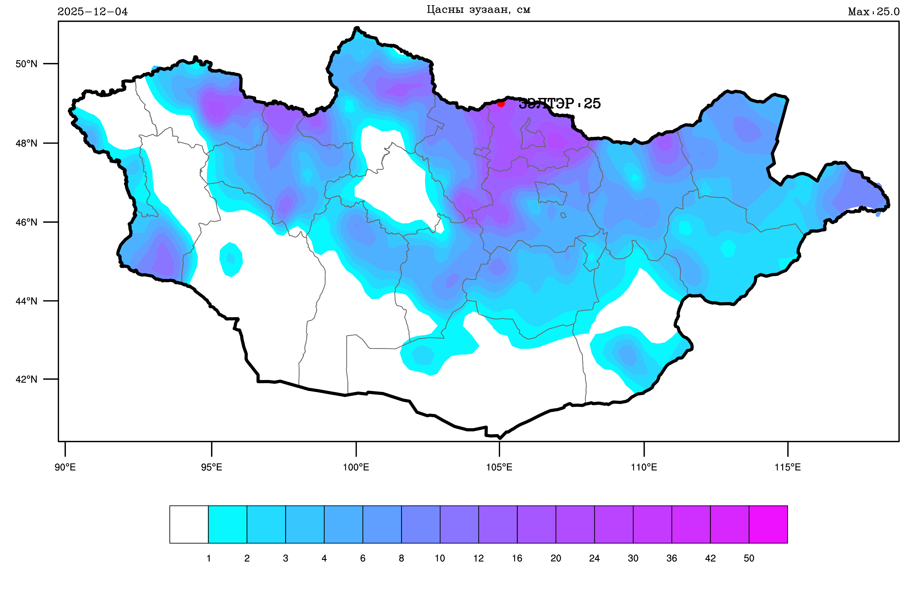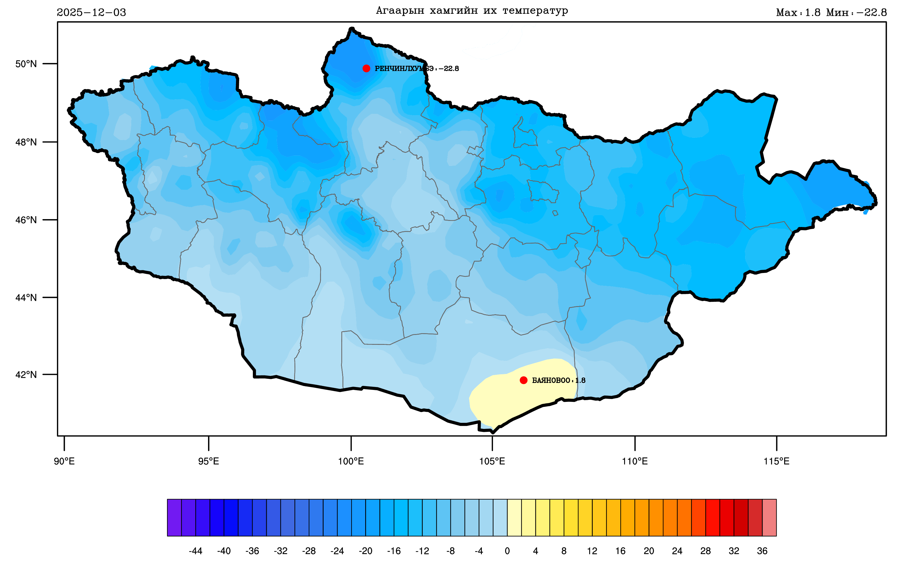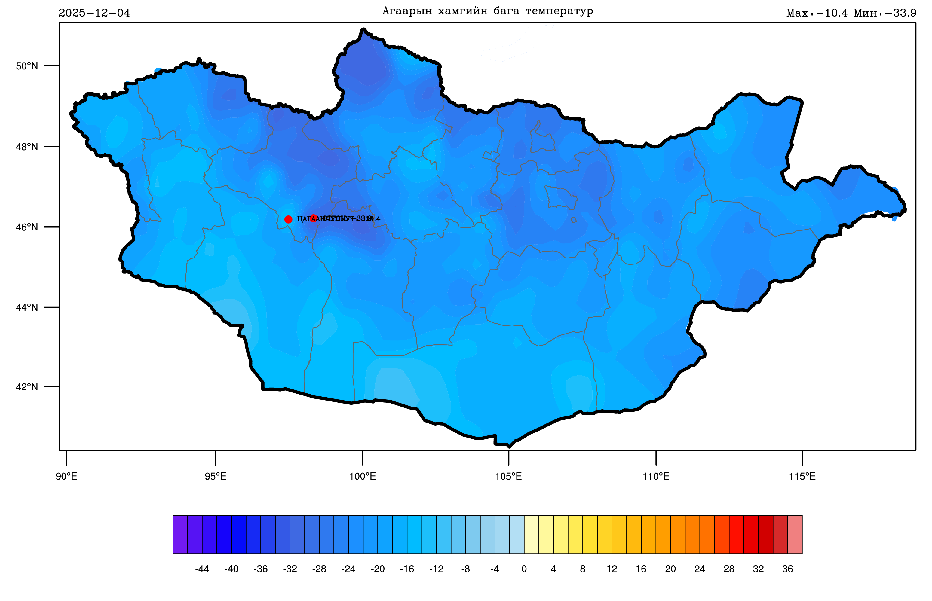 2025 оны 12-р сарын 03-ны 08 цагаас 12-р сарын 04-ний 08 цаг хүртлэх цаг агаарын тойм мэдээ: