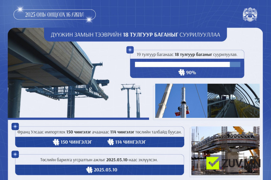Энэ онд дүүжин замын тээврийн 18 тулгуур баганыг суурилууллаа