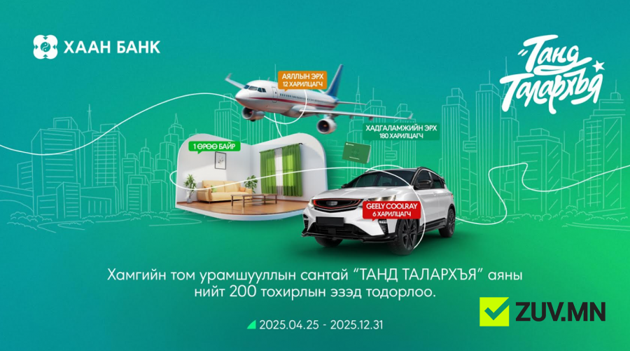 ХААН Банк 35 жилийн ойгоо угтаж нийт харилцагчдадаа зориулан хамгийн том урамшууллын сантай “Танд талархъя” аяныг 2025 оны 4-р сарын 25-наас 12-р сарын 31-нийг дуустал зарласан билээ.