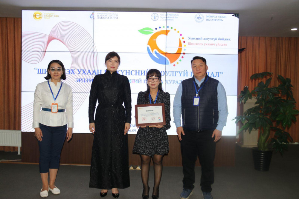 Тэргүүн байрт АШУҮИС-ийн “Үхрийн булууны ясны шөлний үрэвслийн эсрэг үйлчлэлийг хархны эмгэг загвар үүсгэн судалсан дүнгээс”, дэд байрт ШУТИС-ийн “Хүнсний чанар ба сав баглаа боодол”, тусгай байрт тус лабораторийн “Пестицидийн үлдцийн тандалт судалгааны дүн” бүтээл тус тус шалгарчээ.