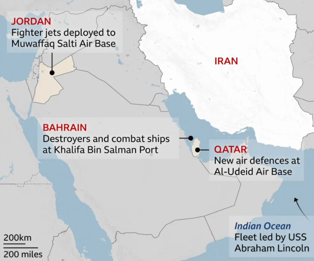 АНУ Өмнөд Хятадын тэнгисээс Тэнгисийн цэргийн хүчний USS Abraham Lincoln байлдааны хөлөг онгоцоо Ойрхи Дорнод руу татсан бөгөөд ингэснээр тус бүс нутаг дахь цэргийн хүчин чадал нь мэдэгдэхүйц өссөн болохыг ВВС онцолжээ.