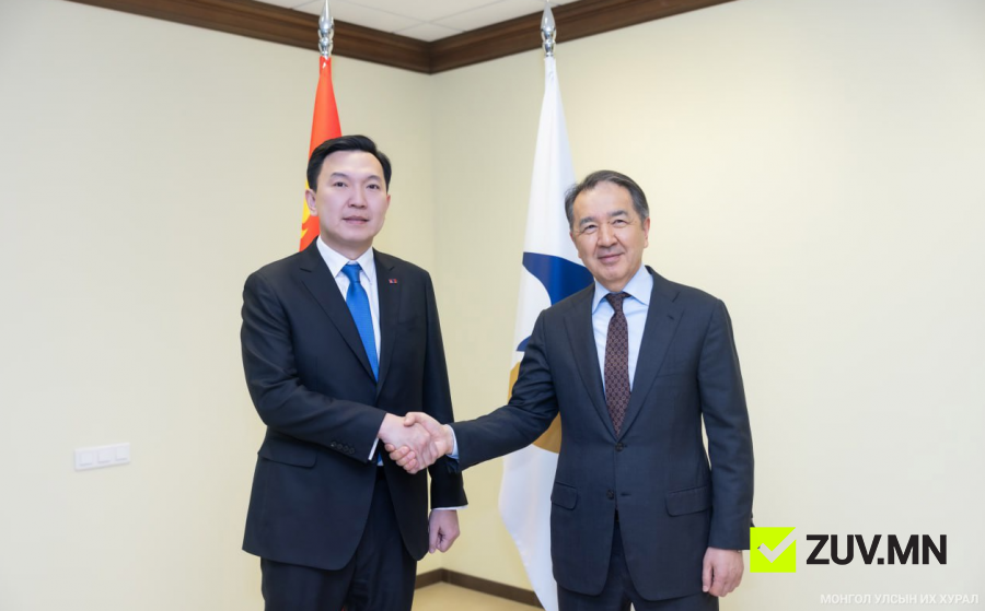 Монгол Улсын Их Хурлын дарга Н.Учрал Оросын Холбооны Улсад хийж буй албан айлчлалынхаа эхний өдөр (2026.02.09) Евразийн эдийн засгийн комиссын Сайд нарын зөвлөлийн дарга Бакытжан Абдирович Сагинтаевтай уулзлаа.