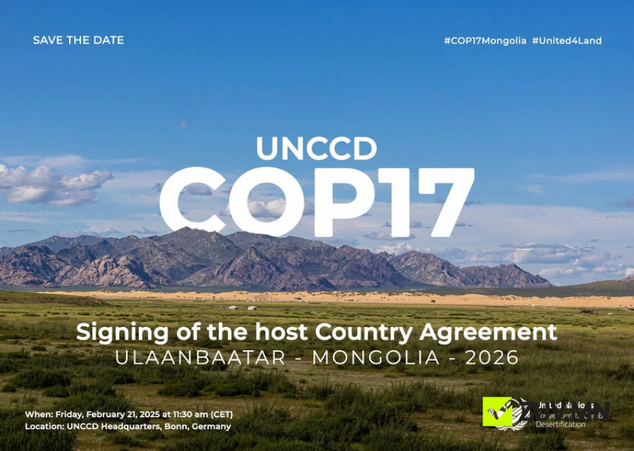 2026 он бол монголчууд нэгдэж хамтдаа хичээн, улсаа таниулах, анхаарлын төвд орох чухал жил. Учир нь, Цөлжилттэй тэмцэх тухай НҮБ-ын конвенцын Талуудын 17 дугаар бага хурал (COP17) Монгол Улсын нийслэл Улаанбаатар хотноо болно.
