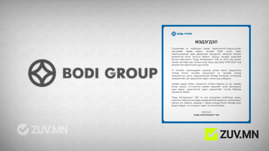 “Бодь Интернэшнл” ХХК нь энэ асуудлаар холбогдох хууль, хяналтын байгууллагуудад шаардлагатай мэдээлэл, материалыг гаргаж өгч байсан, цаашид ч гарган өгөхөд бэлэн бөгөөд үнэн бодит байдал тогтоогдоно гэдэгт итгэлтэй байна" гэжээ.