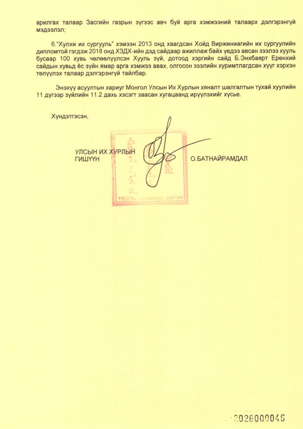 УИХ-ын гишүүн О.Батнайрамдал" гэжээ.