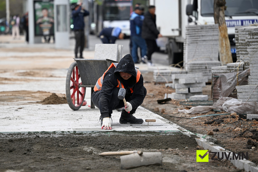 • “АПУ” ХК-ийн уулзвараас Төв шуудангийн уулзвар хүртэл замын зүүн талын 5672 ам метр талбайн явган хүний замын хавтанг хучиж байгаа юм.