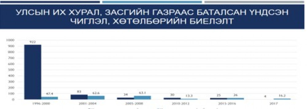Улсын Их Хурал, Засгийн газраас баталсан үндсэн чиглэл, хөтөлбөрийн биелэлтийг товчоолон авч үзвэл