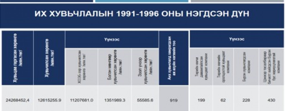 1. Өмч хувьчлалын I үе буюу 1991-1995 он