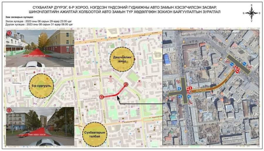 Тодруулбал энэ сарын 29-ний 23:00 цагаас 31-ний өдрийн 06:00 цагийн хооронд тус замын хөдөлгөөнийг хаах юм.
